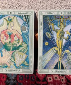 Fronts: Green border with design, astrological symbols and Hebrew letters on bottom of trumps