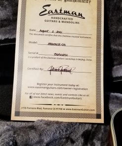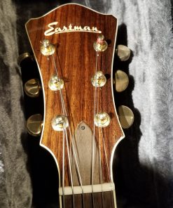The Eastman guitars designed by Jim Fisch are handcrafted with a carved solid spruce top and carved mahogany back with mahogany sides. They feature a rosewood fingerboard and fittings, Jinho Imperial tuning machines, and a floating Kent Armstrong pickup. This instrument features Eastman’s beautiful Classic Sunburst finish.