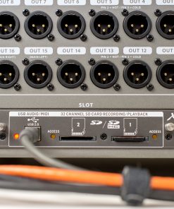The X32’s recording capability just got even more robust, thanks to the new X-LIVE Expansion Card and USB Audio/ MIDI Interface. Whether you’re multitracking your live performances directly to a PC/Mac, or to the flash media in your console, X-LIVE makes it easier than ever. Equipped with dual SD/SDHC-card slots, X-LIVE provides uncompressed recording and playback of up to 64 GB of memory, enough to capture a 3 hour and 20 minute continuous 32-track session – all of which can be done without ever leaving the X32 environment. Just think about it, no external wiring or computer issues – everything you need is in a single location. And X-LIVE is equally at home in either the recording studio or the performance venue.