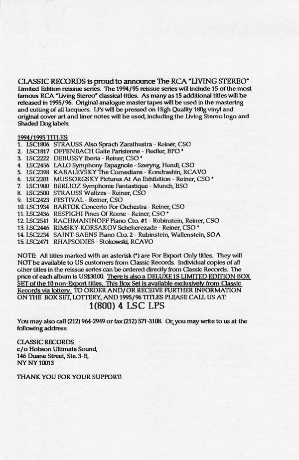 Includes insert with additional releases in series, and reissue details