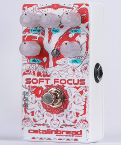 The Soft Focus patch on the Yamaha FX500 was widely used in the ‘90s by early shoegaze bands, most notably Slowdive on Souvlaki. With its roots in that patch, the Catalinbread Soft Focus is intended to be an instant shoegaze button, while addressing the most glaring issues of the original unit: no mix control, a sub-par preamp, and a ghastly tone-sucking bypass signal. At its heart, the Soft Focus is a heavily modified plate reverb with adjustable time, which is subsequently split into three paths. One path contains a multi-voiced chorus modulator, another features a well-appointed octave-up mixed in with the reverb, and the third path leaves the reverb untouched. The Mod knob controls the rate of the chorus on path one, and the Symphony knob controls the level of the octave on path two. All controls are “coupled” to the tone of the reverb to give users an expansive playing field of sounds to discover and fine tune. Our Soft Focus is not an exact recreation but was exhaustively