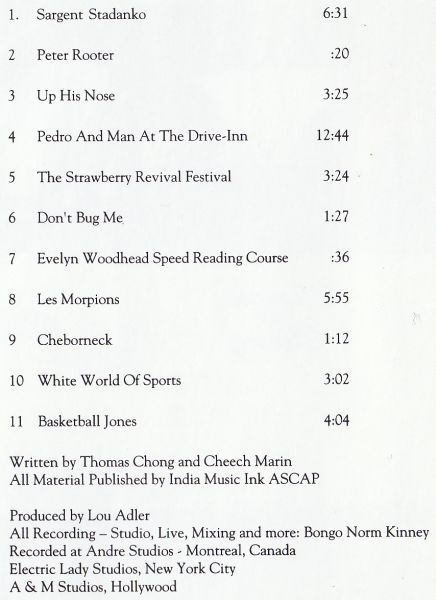 Main artist as on cover, name on disc is “Cheech & Chong”.
