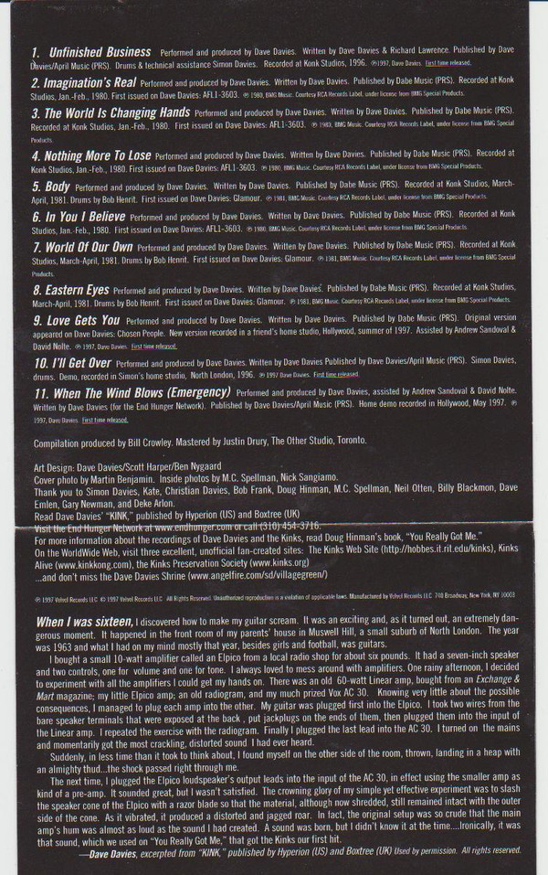 A set of old recordings taken from the first two solo albums from the early eighties (Imagination’s Real, The World Is Changing Hands, Nothing More To Lose, Body, In You I Believe, World Of Our Own and Eastern Eyes), one full blown new studio recording (Unfinished Business), a re-recording (Love Gets You) and two demos (I’ll Get Over, When The Wind Blows (Emergency)). For extensive details please open the images.