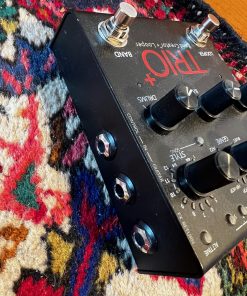 The TRIO+ is a simple-to-use guitar pedal that listens to the way you play and automatically generates bass and drum parts that match your song. Just plug your guitar into the TRIO+, press the Band footswitch to teach the TRIO+ your chords and rhythm, then press the Band footswitch again to start playing with your own personal band! Bass and drum levels can be adjusted for the perfect mix using the TRIO+’s Bass and Drums knobs. The TRIO+ also features a Simple Bass button lets you select between 3 bass line modes for busy or simple bass lines. Pushing the Band Creatorâ„¢ paradigm further, the TRIO+ also allows you to loop and custom sequence your looped guitar parts to create full songs on the fly. Press the TRIO+’s Looper footswitch to record a loop along with an unlimited number of overdubs.