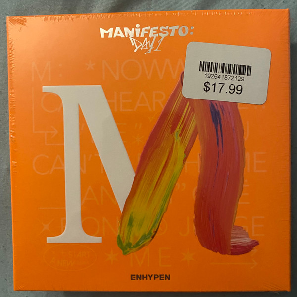 MANIFESTO : DAY ONE (ENGENE Ver.) will be available in three different versions: D, J and M. Contents of the album include a CD, Photo Book (D: 48 pages, J: 52 pages, M: 52 pages), Photo Card (random 2 of 14), Folded Poster and Stickers. Box Dimensions: 140 x 140 x 16 (mm).