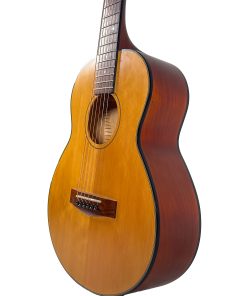 A solid spruce top gives this 23.3″ scale, 3/4-size guitar big-time tone. Lightweight and easy to transport, it fits in places you’d never try to put a normal-size guitar. Features nato neck, back, and sides; and die-cast tuners.