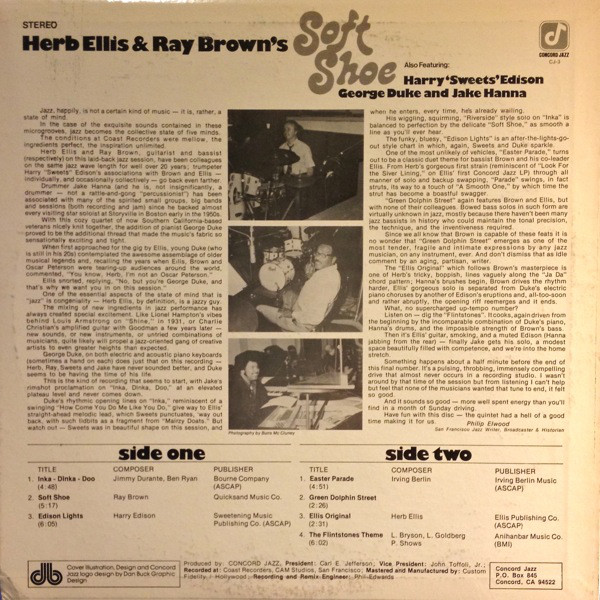 Herb Ellis & Ray Brown – Herb Ellis & Ray Brown’s Soft Shoe LP NM or M- NM or M- 1974 Concord Jazz Jazz Post Bop, Swing w/ George Duke, Harry Sweets Edison. All records are Ultrasonic Cleaned on a KLAudio machine for improved audio fidelity and sonics! Go to eclsounds.com to view pics and flash sales.