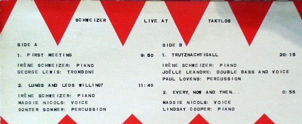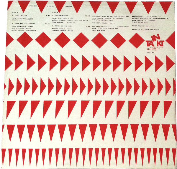 Recorded live 4th & 5th February 1984 at the Taktlos Festival, Rote Fabrik, Zürich.