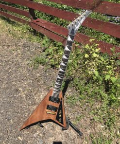 Other great features include dual Jackson high-output humbucking pickups with ceramic magnets power, single volume and tone controls, three-way toggle switch, an adjustable string-through compensated bridge and die-cast tuners. This angular battle-tested axe is available in Natural Oil, and is finished off with a black pickguard and gold hardware. Case sold separately.