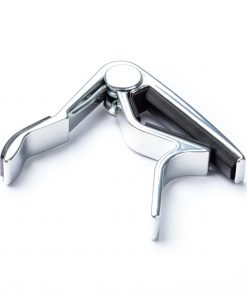 This curved-radius acoustic guitar capo allows you to quickly and easily change key with a squeeze of the hand without hindering your fingers or scratching the neck of your guitar.