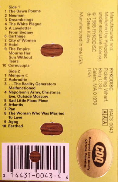 Recorded at Cloudberry Studios, Illyria, Jan – March 1987