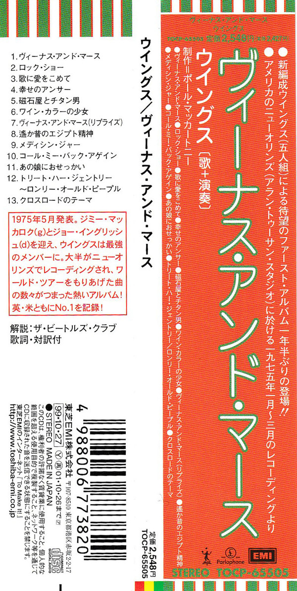 Also includes obi and folded leaflet of release notes and lyrics in Japanese and English.