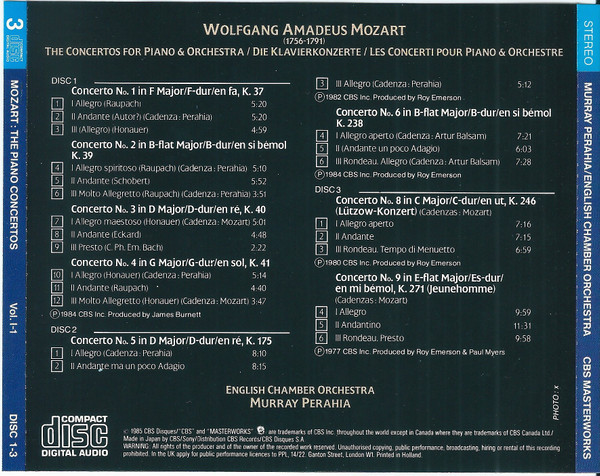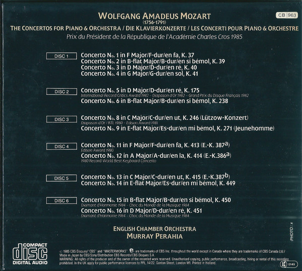 Booklet includes a Murray Perahia interview and liner notes in English, German and French.